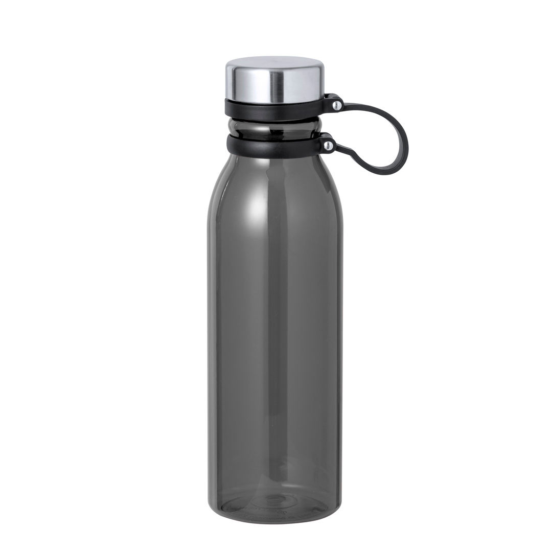 Bidón en RPET de 830 ml de capacidad. Tapón de seguridad de rosca en acero inox y original cinta de silicona para un fácil transporte. Disponible en variada gama de colores translúcidos. Libre de BPA y presentado en atractiva caja de diseño kraft. El material RPET se elabora a partir de plástico reciclado, para así fomentar la reutilización de residuos plásticos y ayudar a la sostenibilidad del planeta.